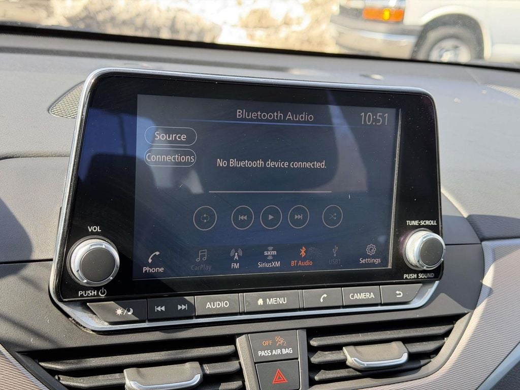 - Radio: AM/FM Audio System -inc: RDS, MP3 and aux-in, 6 speakers, NissanConnect featuring Apple CarPlay, Android Auto, 8" color display w/multi-touch control, 1 front illuminated USB port (type-C) for compatible devices, SiriusXM radio, Bluetooth® hands-free phone system, streaming audio via Bluetooth®, hands-free text messaging assistant, Siri Eyes Free and Google Assistant voice recognition